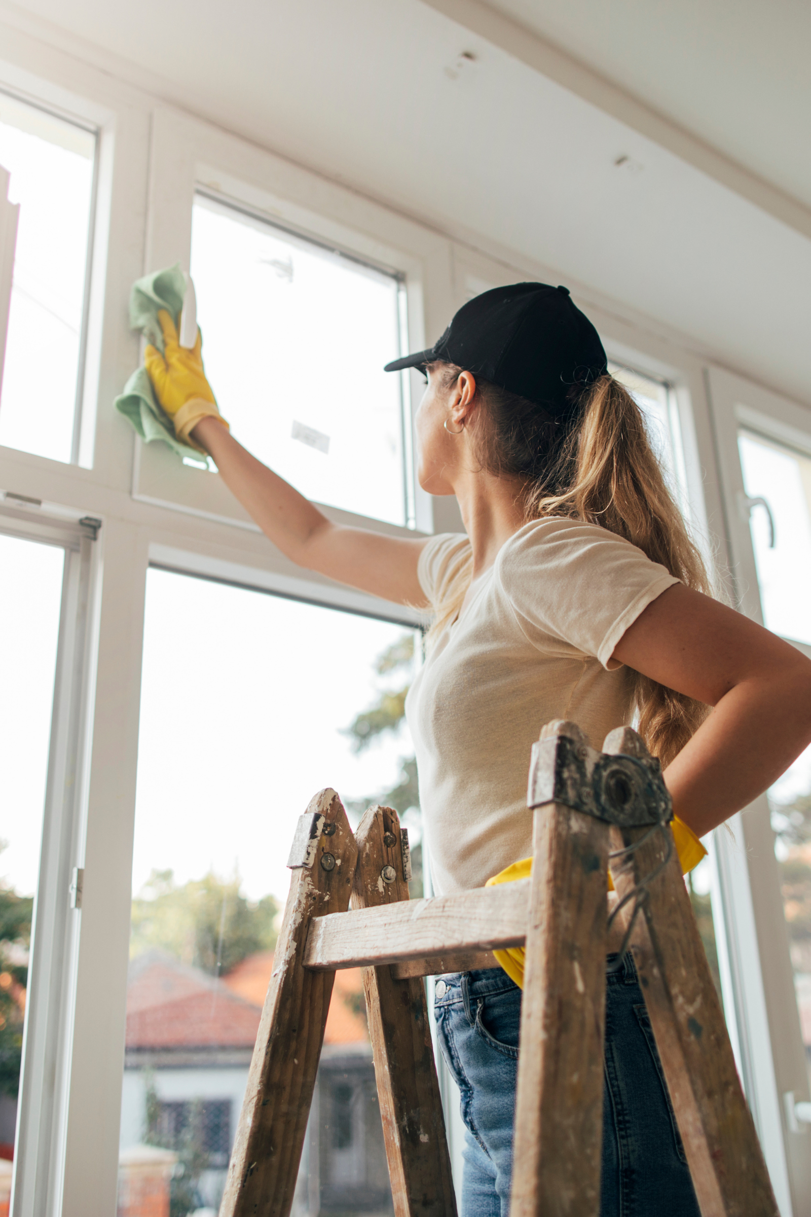 • Machine cleaning of floors, doors and windows